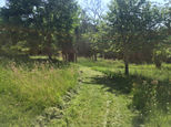 Pensée comme une forêt jardin, cette étroite bande 50m sur 5m suit la haie de la pente. J'y plante chaque année arbres et arbustes fruitiers, lianes, couvre-sols, rosiers...